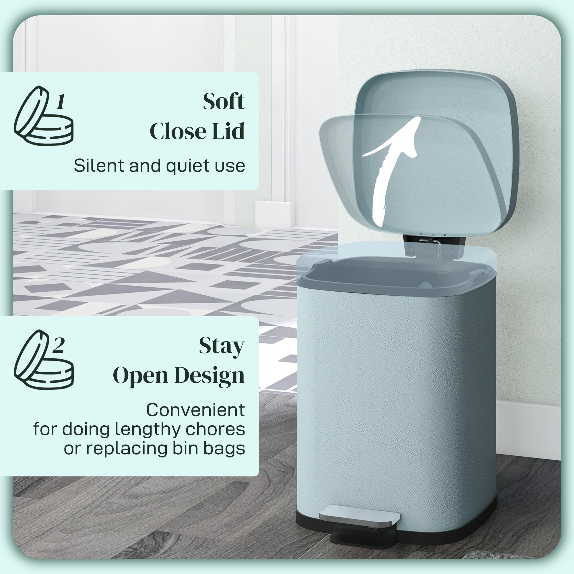 HOMCOM 12L Kitchen Pedal Bin, Metal Rubbish Bin with Soft-close Lid, Light Green