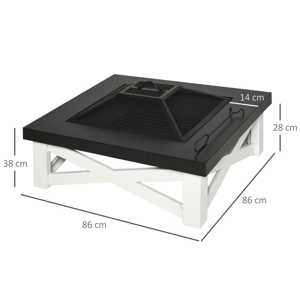 Outsunny 86cm Square Garden Fire Pit Square Table w/ Poker Mesh Cover Log Grate