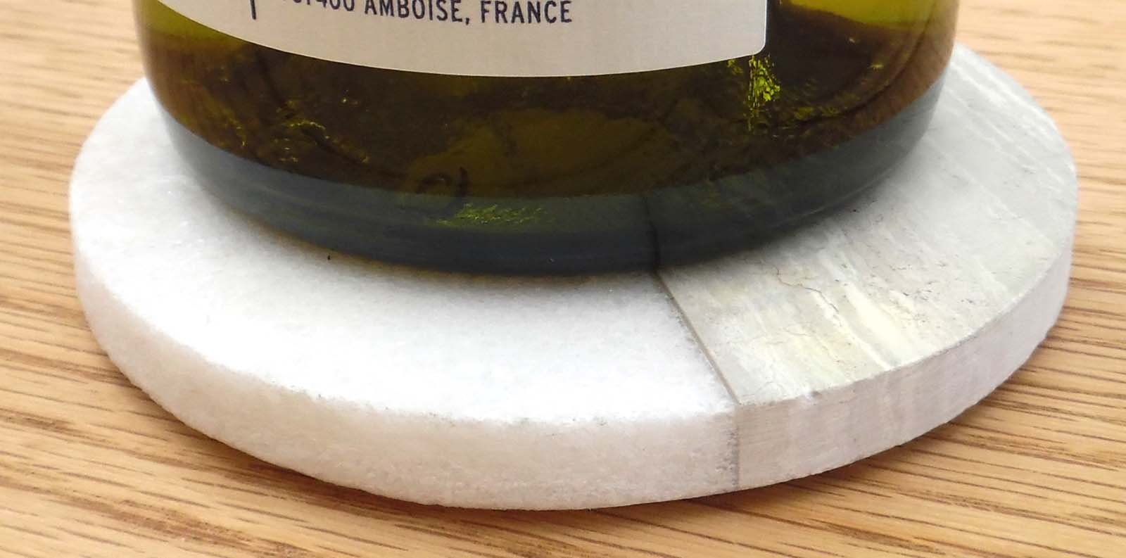 A lovely set of four round marble coasters. Each coaster has a smooth white marble finish on one half and a light grey marble wood effect design on the other, creating the perfect stylish place to put your glass down. Each coaster has a padded felt underside to protect your furnishings and will look great in any style home – modern or traditional!. Each set is tied together with grey felt string and would make a fab present! Each coaster measures 10x10x0.3cm. Measurements: 10 x 10 x 7cm SKU: KG0001
