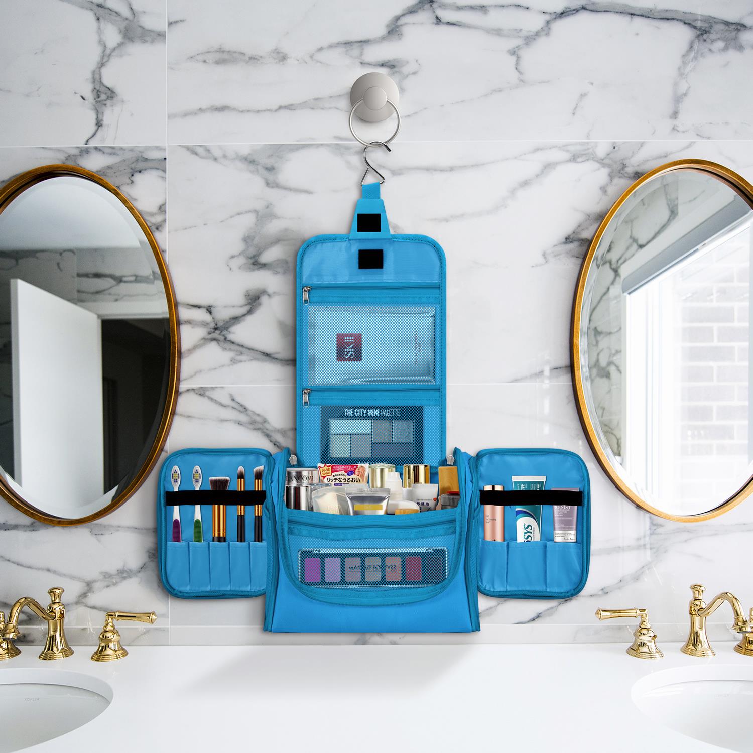 TRAVEL EASIER: Organising your travel essentials has never been easier! Each of your items is plainly ordered and visible in this toiletry bag, ensuring that you’ll able to locate your stuff in seconds rather than digging personal items through a jumble. Suitable for road hauls or family vacations, camping, gym session, business trips, hiking, and other usesCONVENIENT DESIGN: With a reinforced double-stitched handle, two zippers, and a hook that works fantastically on your bathroom or other places, this toiletry bag offers the most practical design and plenty of space for your essentials. All of your essential toiletries can be neatly stored in multiple compartments with functional mesh pockets and elastic loops without taking up a lot of room in your luggage.SAVES SPACE: Saves space with these bag that has an internal space that holds all your makeup and toiletries making packing and unpacking a breeze. They can be squeezed into the luggage organiser for bags to save room and since this can be compacted, they are incredibly light without adding weight to your baggage.MULTI-USE: These toiletry bags are perfect for organising and storing a variety of items, including cosmetics, toiletries, and charging cords for electronics. It can also be used as gear bag, wash bag, bath organiser, bathroom bag, shaving bag, convenience kit, travel kit bag, hygiene kit, and other similar purposes.PREMIUM QUALITY: High-quality nylon fabric that are durable, washable, waterproof, moisture-proof and dustproof. Each bag measures 15 x 28 x 20 cm (5.9 x 11 x 7.9in). Available in 8 colors: Navy, Hot Pink, Black, Blue, Dark Grey, Light Grey, Pink, and Purple.